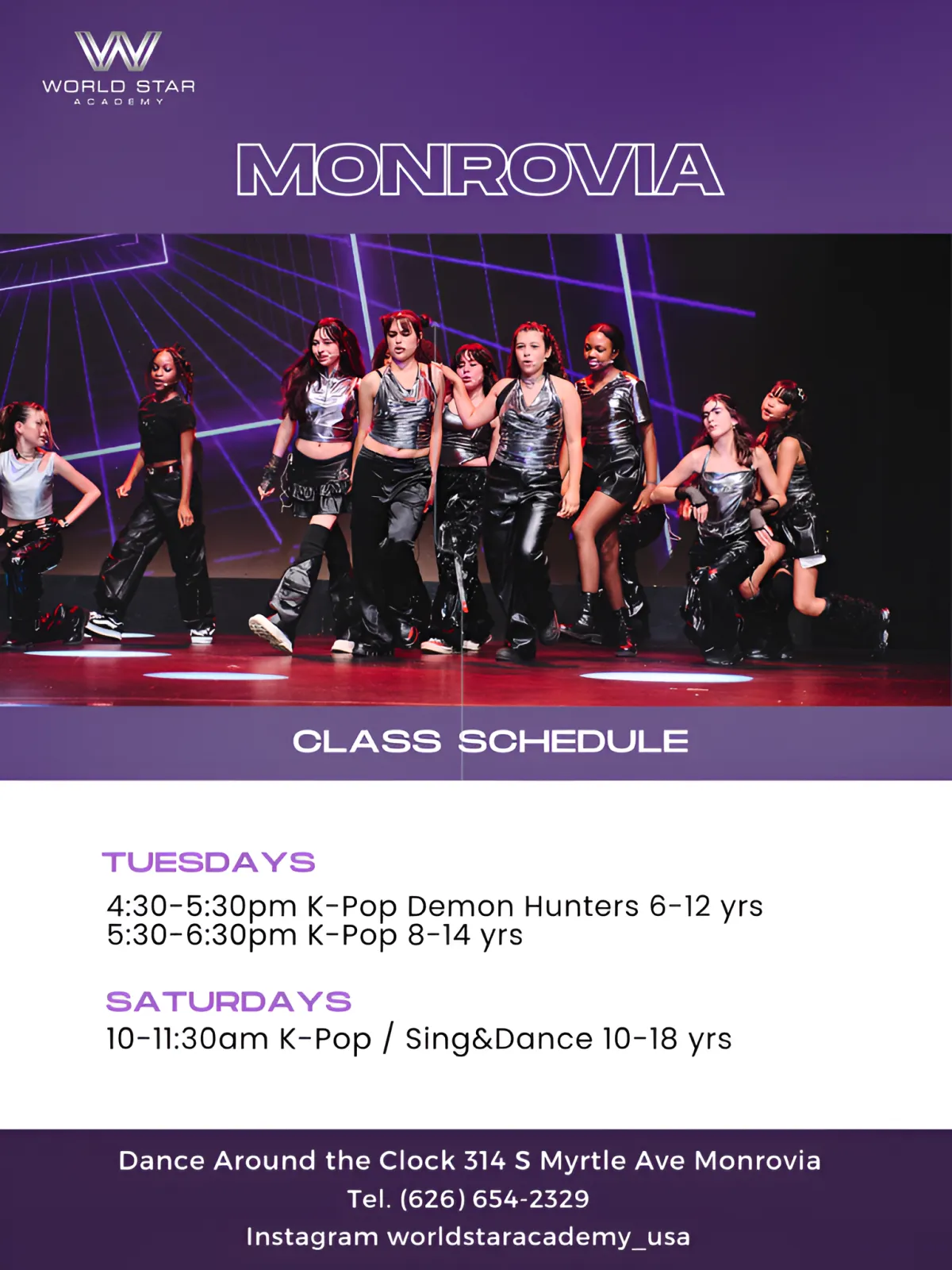 It is an 8 week long class on the same weekly schedule. In every class students will learn a new section of the songs from K-Pop Demon Hunters so don’t miss out on any class. Classes are 1 hour long and cost $35 each, or you can grab the 8-week package for $240 for a discount.